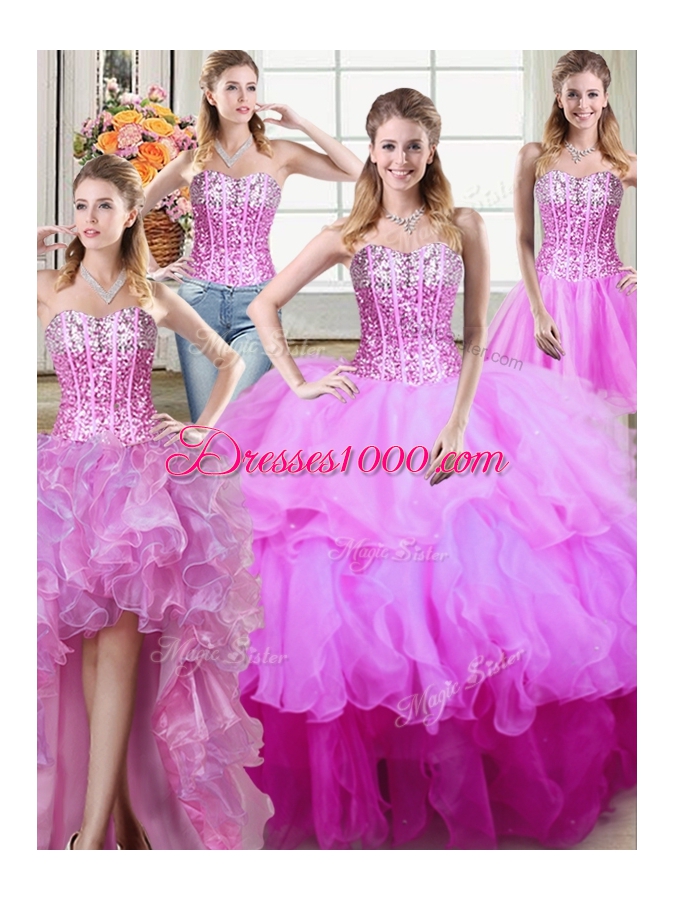 Custom Made Four Piece Multi-color Sleeveless Ruffles and Sequins Floor Length Quince Ball Gowns