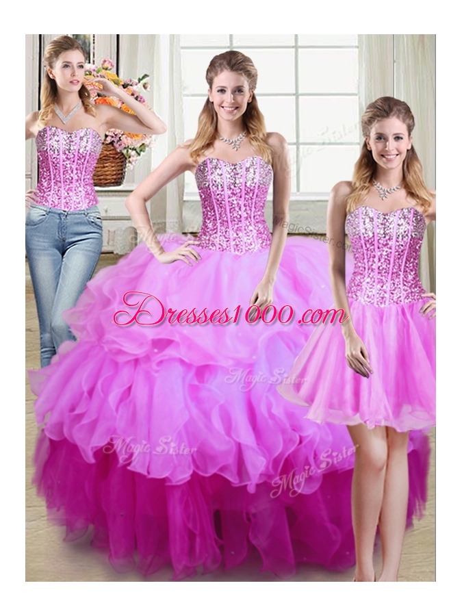 Fitting Three Piece Sequins Sweetheart Sleeveless Lace Up Quinceanera Gown Multi-color Organza
