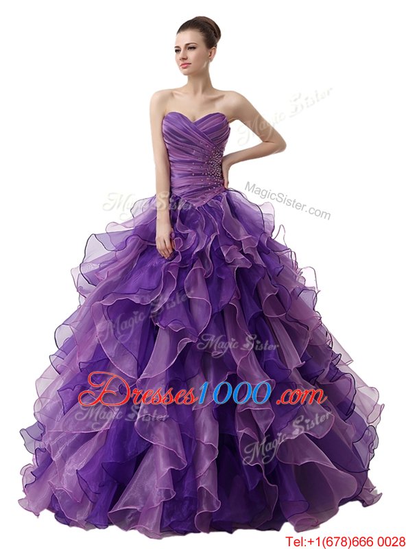 Purple Sleeveless Organza Lace Up Quinceanera Gowns for Military Ball and Sweet 16 and Quinceanera
