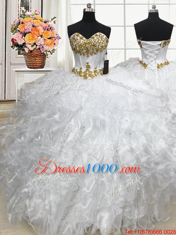 Chic White Lace Up 15 Quinceanera Dress Beading and Ruffles Sleeveless Floor Length
