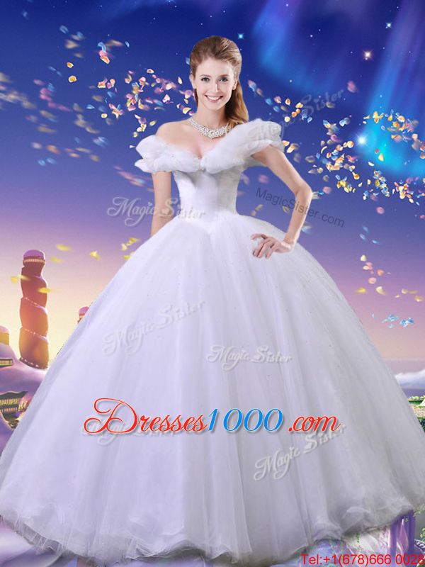Cinderella White Lace Up Off The Shoulder Beading and Bowknot Sweet 16 Dress Tulle Sleeveless