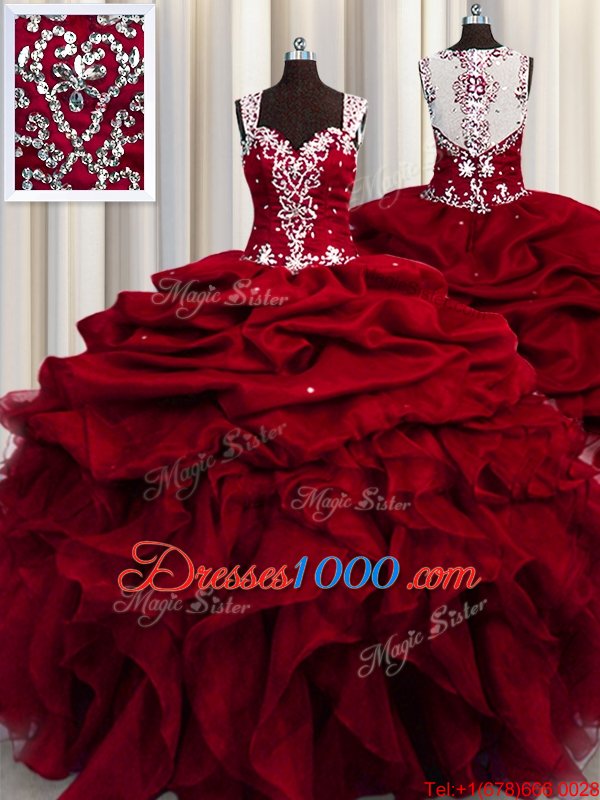 Sweet See Through Sleeveless Beading and Ruffles and Sequins Zipper Quince Ball Gowns