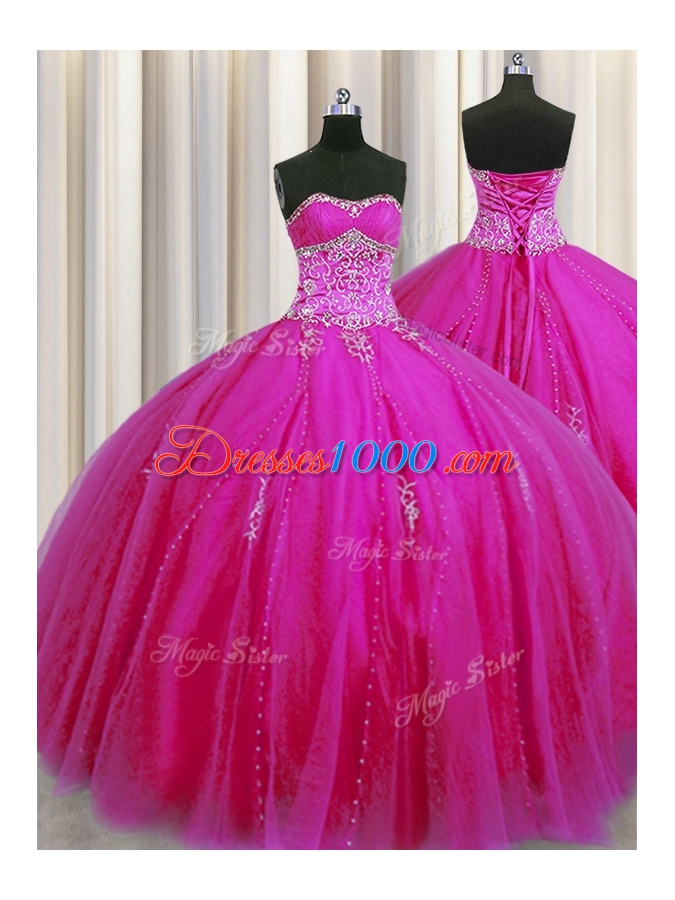 Really Puffy Floor Length Ball Gowns Sleeveless Fuchsia Quinceanera Gowns Lace Up
