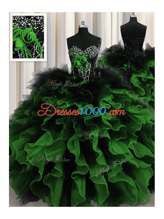 Multi-color Lace Up Sweetheart Beading and Ruffles Quinceanera Dress Organza and Tulle Sleeveless