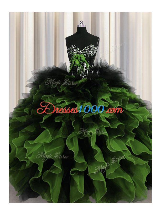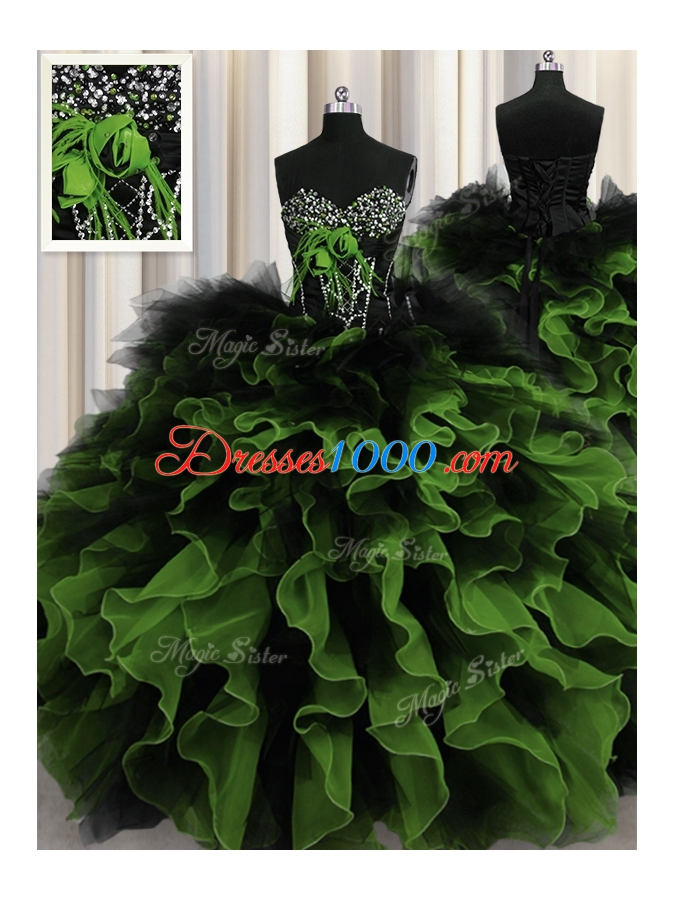 Extravagant Multi-color Sweetheart Lace Up Beading and Ruffles Quinceanera Dresses Sleeveless