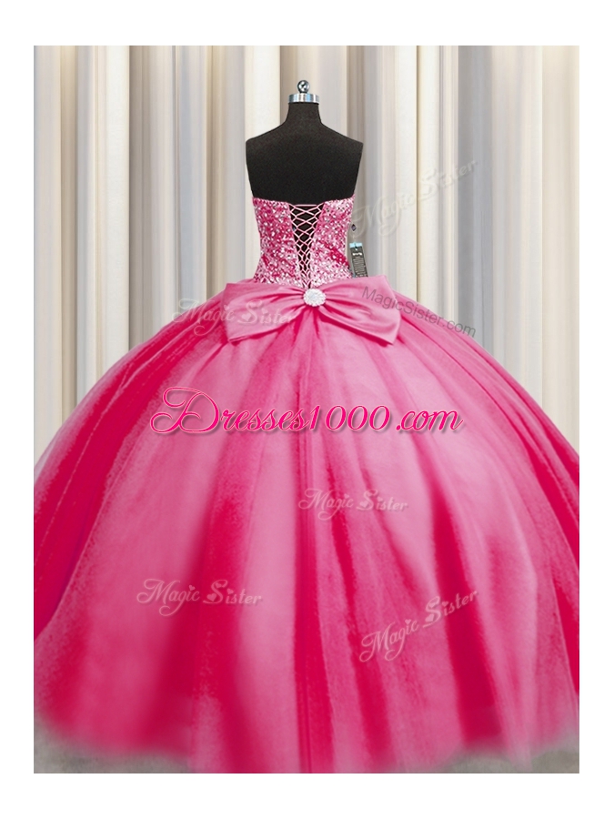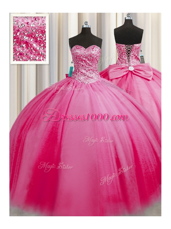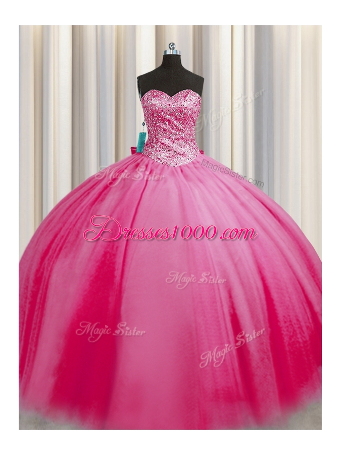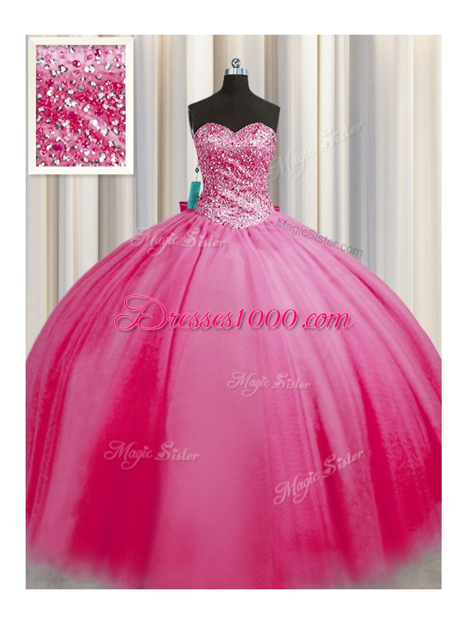 Big Puffy Sweetheart Sleeveless Ball Gown Prom Dress Floor Length Beading Rose Pink Tulle