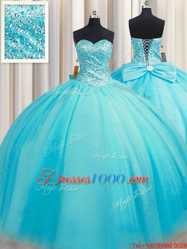 Puffy Skirt Floor Length Lace Up Sweet 16 Dress Baby Blue and In for Military Ball and Sweet 16 and Quinceanera with Beading