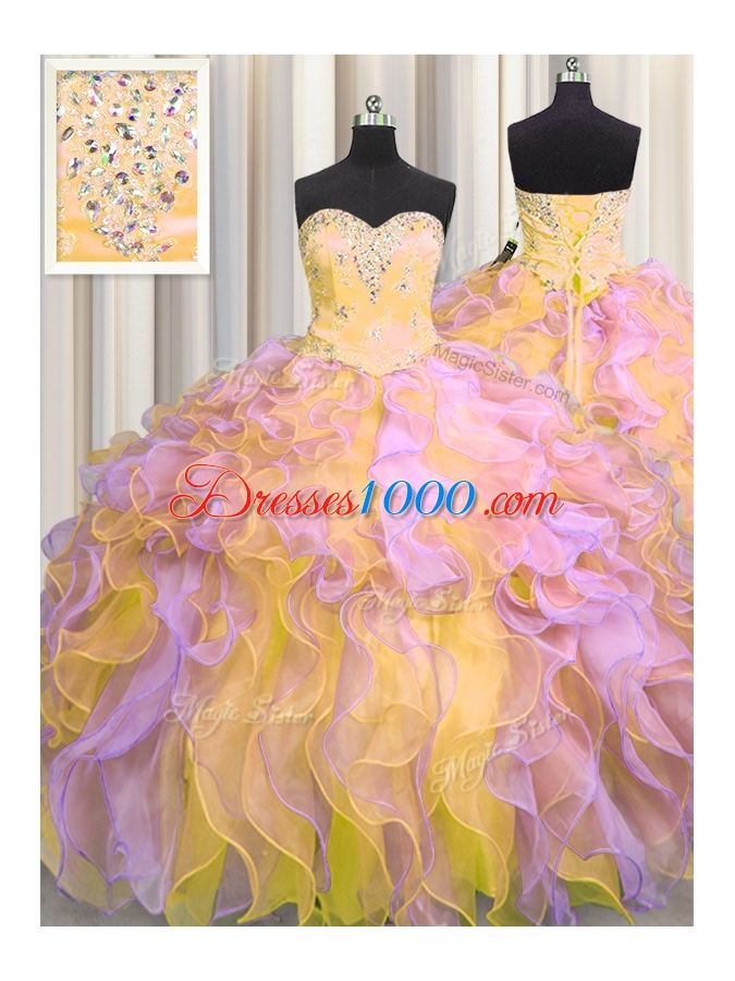 New Style Multi-color Sweetheart Lace Up Beading and Appliques and Ruffles Quinceanera Gowns Sleeveless