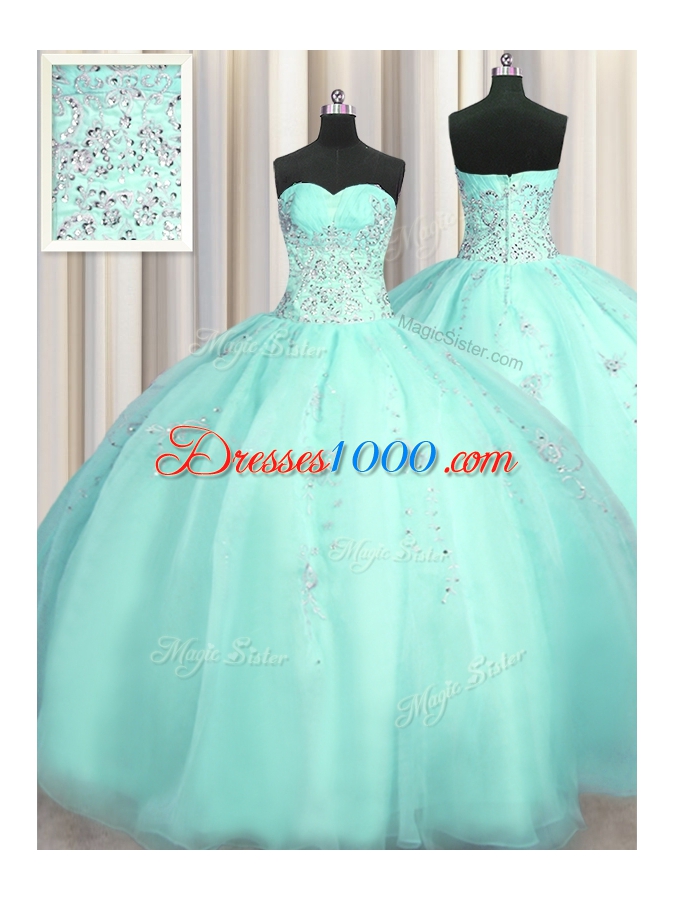 Really Puffy Floor Length Zipper Quince Ball Gowns Turquoise and In for Military Ball and Sweet 16 and Quinceanera with Beading and Appliques