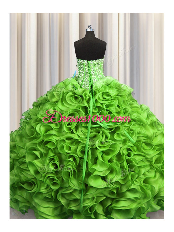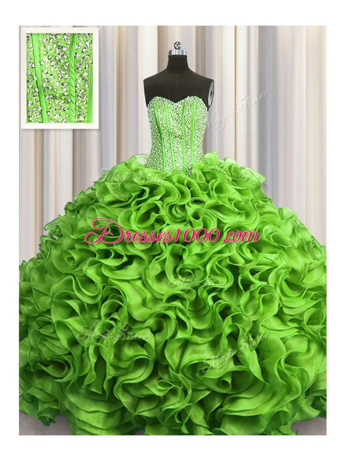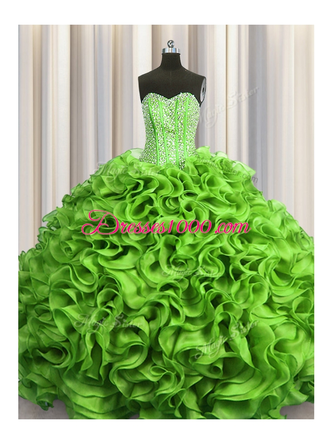 Visible Boning Beading and Ruffles Sweet 16 Dresses Lace Up Sleeveless Floor Length