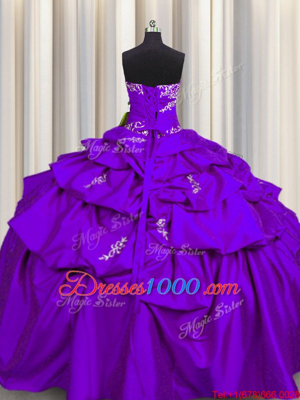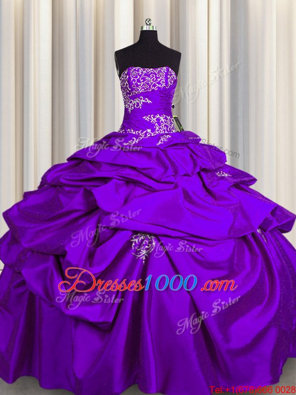 Purple Sleeveless Floor Length Appliques and Pick Ups Lace Up Quinceanera Gown