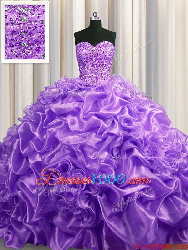 Popular Pick Ups Court Train Ball Gowns 15 Quinceanera Dress Lilac Sweetheart Organza Sleeveless With Train Lace Up
