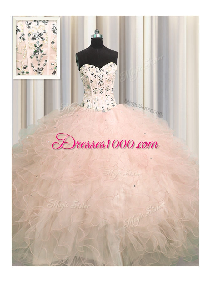 Nice Visible Boning Pink Sleeveless Tulle Lace Up Sweet 16 Dresses for Military Ball and Sweet 16 and Quinceanera