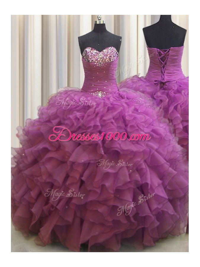 Beaded Bust Floor Length Ball Gowns Sleeveless Fuchsia Sweet 16 Dress Lace Up