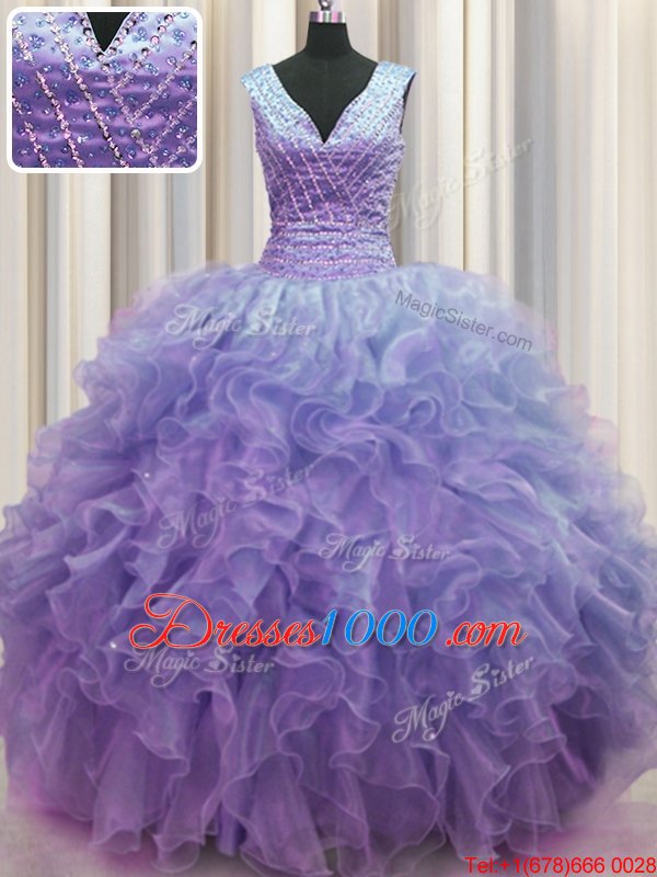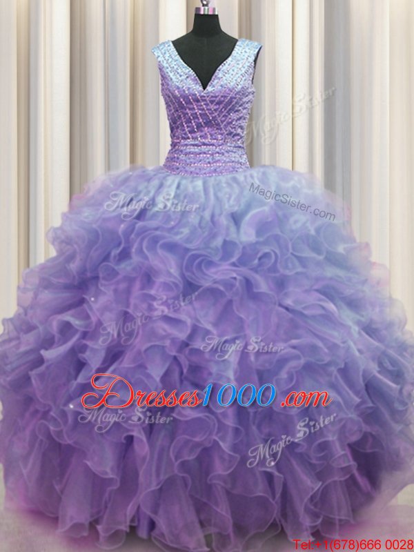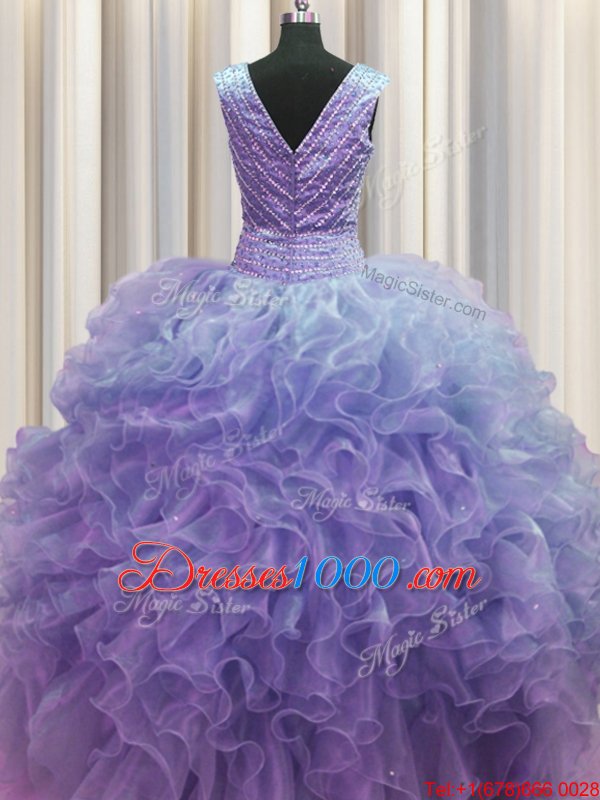 Romantic V Neck Zipper Up Sleeveless Ruffles Zipper Vestidos de Quinceanera