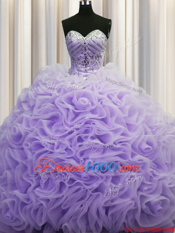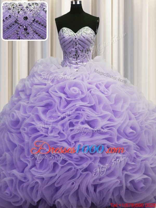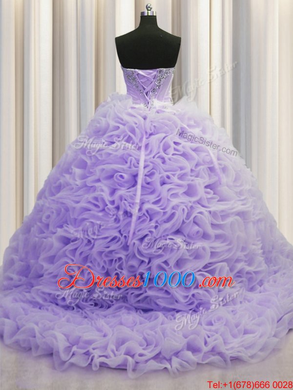 Brush Train Ball Gowns Quinceanera Gowns Lavender Sweetheart Fabric With Rolling Flowers Sleeveless Lace Up
