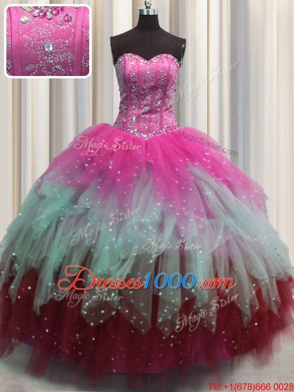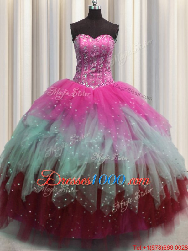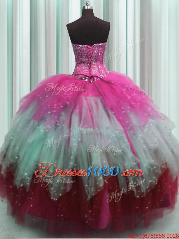 Smart Visible Boning Multi-color Sleeveless Tulle Lace Up Vestidos de Quinceanera for Military Ball and Sweet 16 and Quinceanera