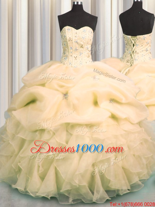 Pick Ups Visible Boning Ball Gowns Sweet 16 Dress Peach Sweetheart Organza Sleeveless Floor Length Lace Up
