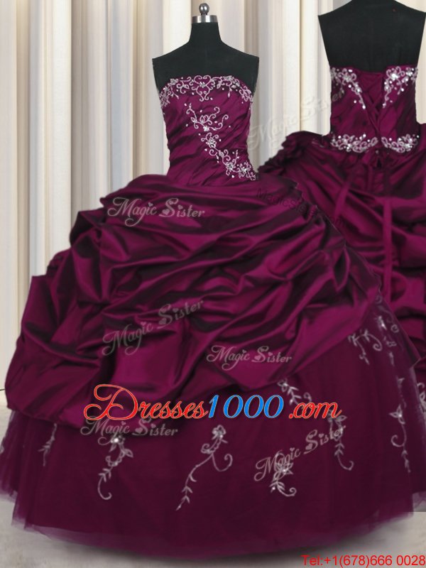 Colorful Taffeta Sleeveless Floor Length Ball Gown Prom Dress and Beading and Appliques and Pick Ups