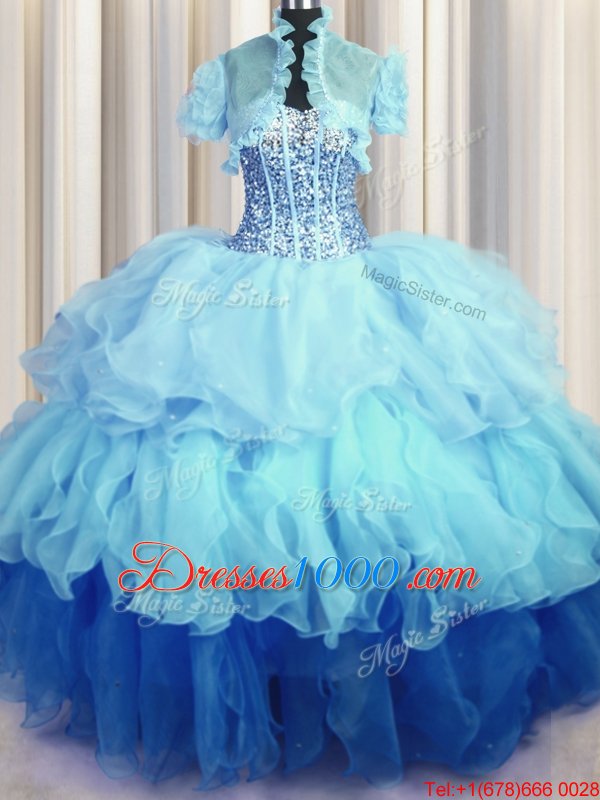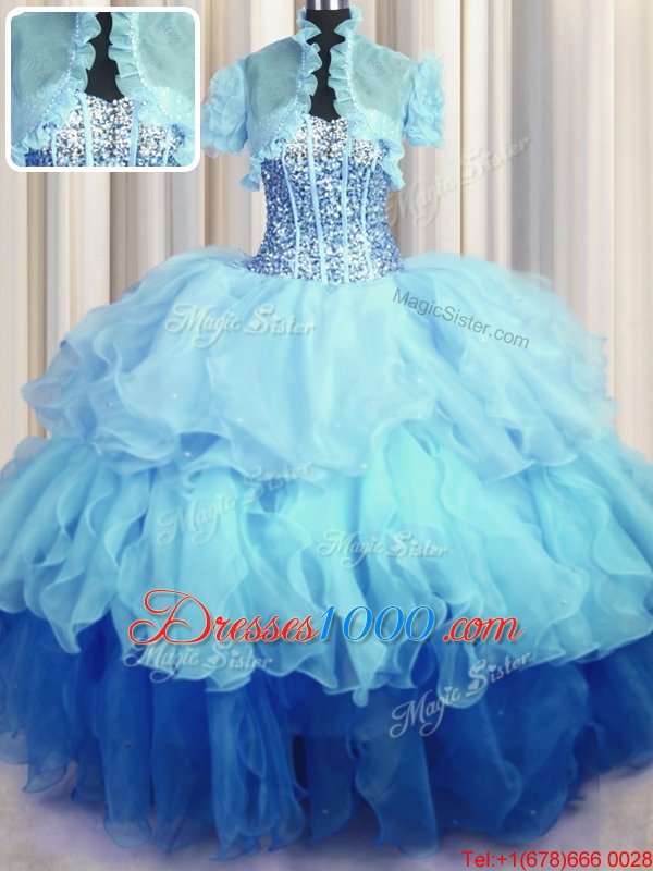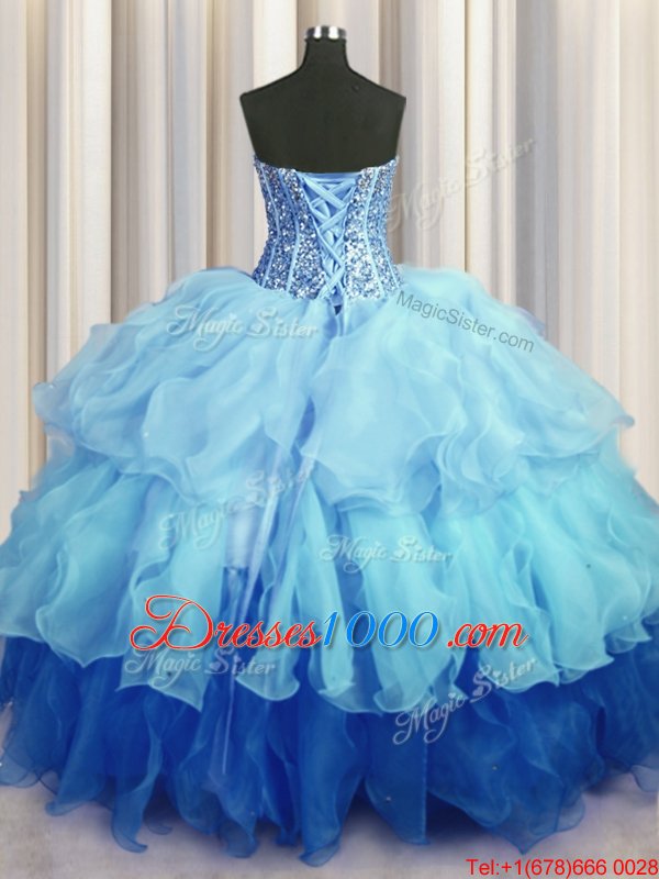 Beauteous Visible Boning Bling-bling Beading and Ruffled Layers Sweet 16 Dress Multi-color Lace Up Sleeveless Floor Length