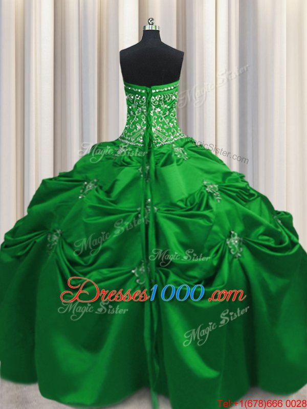 On Sale Beading and Appliques and Embroidery Sweet 16 Dress Green Lace Up Sleeveless Floor Length