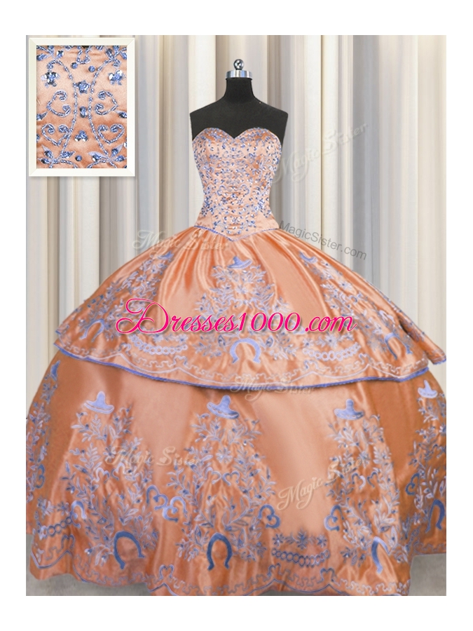 Captivating Sleeveless Taffeta Floor Length Lace Up Quinceanera Gown in Orange for with Beading and Embroidery