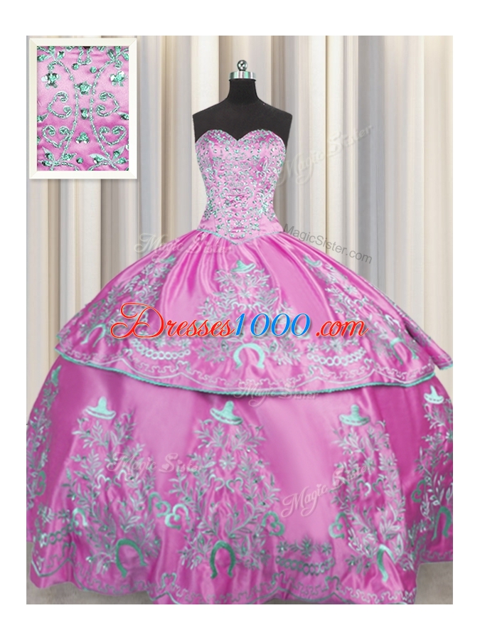 Lilac Chiffon Lace Up Sweetheart Sleeveless Floor Length Quinceanera Dresses Beading and Embroidery