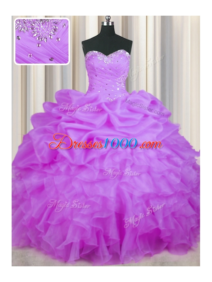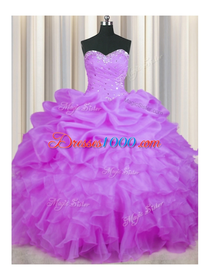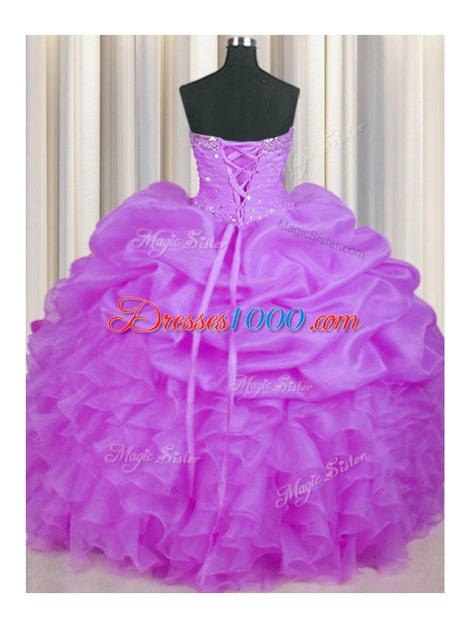 Purple Sleeveless Beading and Ruffles and Pick Ups Floor Length Quinceanera Gown