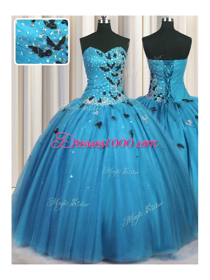 Adorable Baby Blue Lace Up Vestidos de Quinceanera Beading and Appliques Sleeveless Floor Length