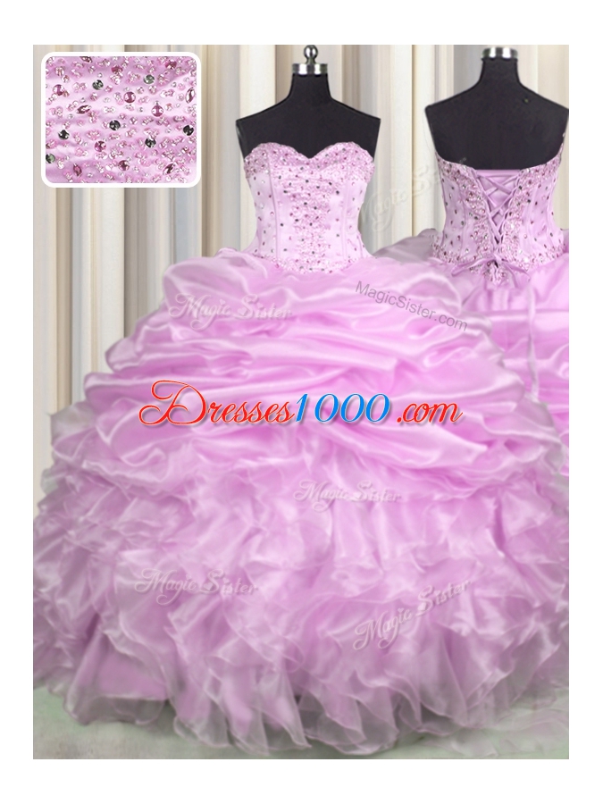 Pick Ups Brush Train Ball Gowns Vestidos de Quinceanera Lilac Sweetheart Organza Sleeveless Floor Length Lace Up