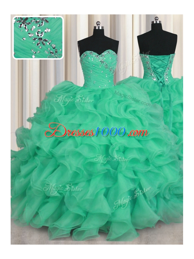 Adorable Organza Sweetheart Sleeveless Lace Up Beading and Ruffles Sweet 16 Dresses in Turquoise