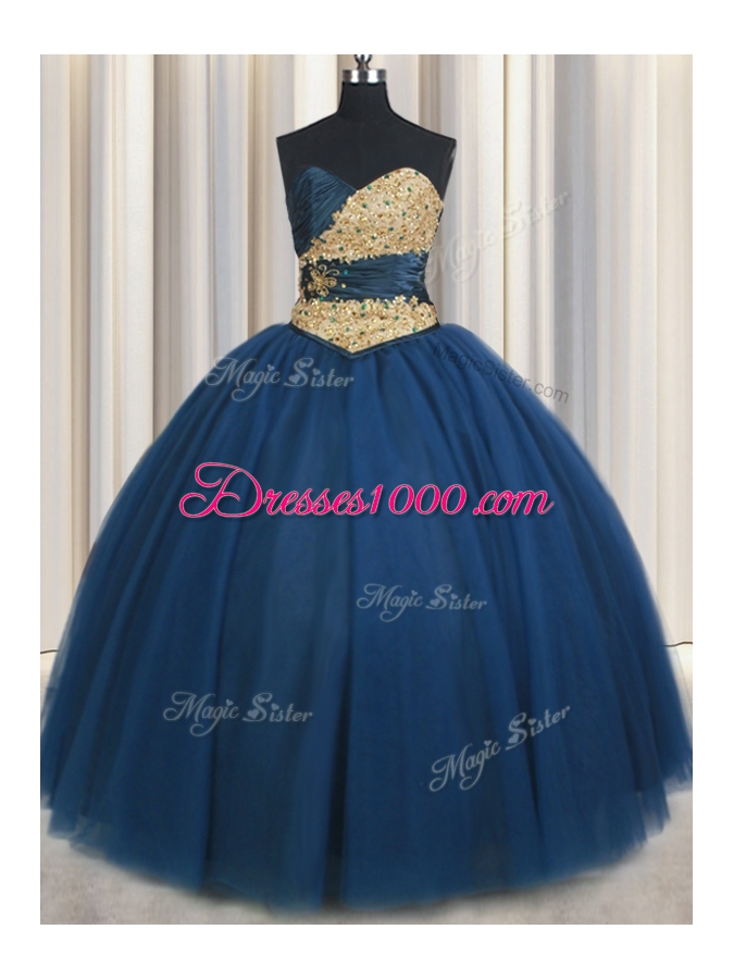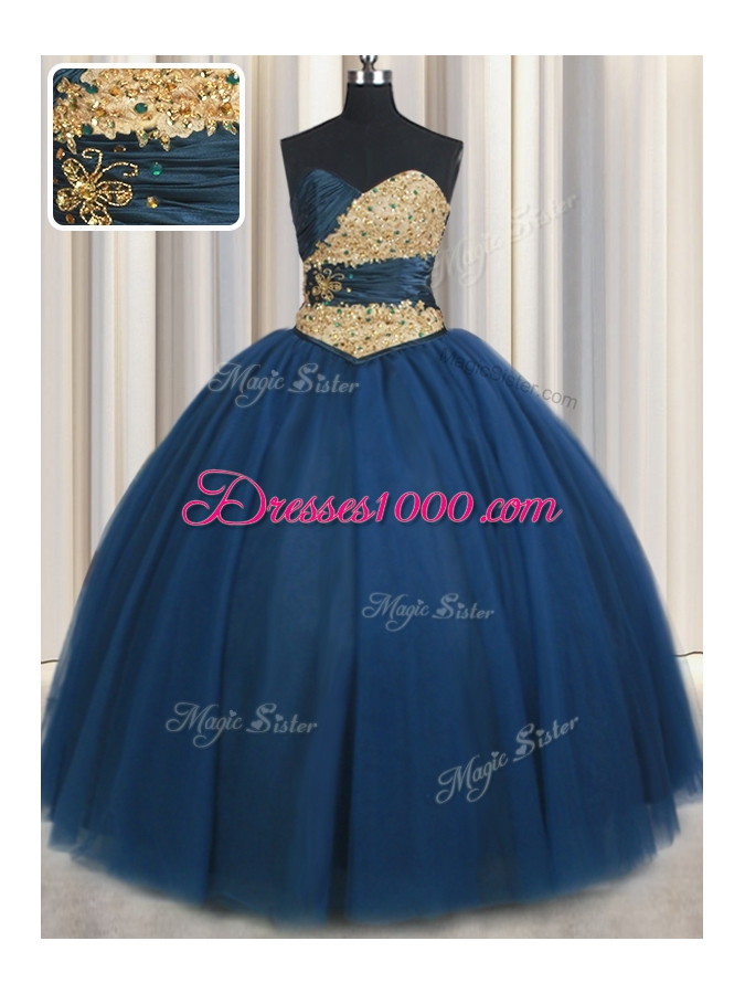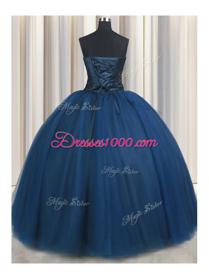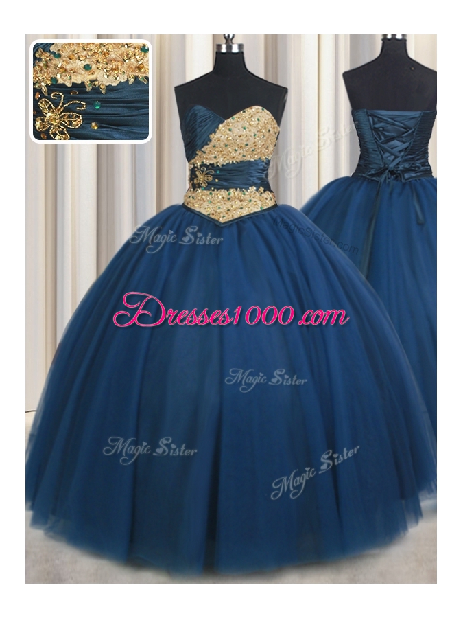 Floor Length Ball Gowns Sleeveless Teal Quinceanera Gowns Lace Up