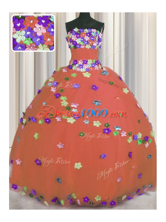 Strapless Sleeveless Tulle Sweet 16 Dress Hand Made Flower Lace Up