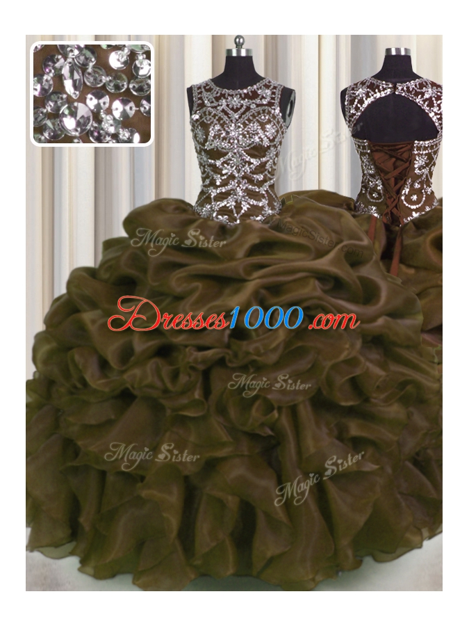 Delicate See Through Sweetheart Sleeveless Lace Up Sweet 16 Quinceanera Dress Brown Organza
