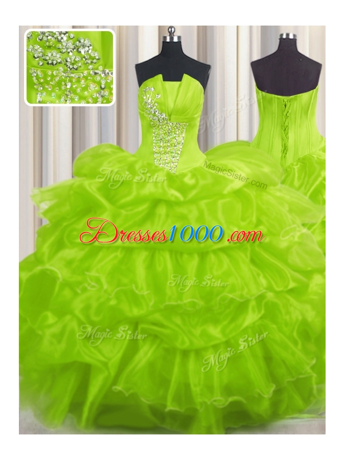 Sleeveless Floor Length Beading and Ruffles and Pick Ups Lace Up Sweet 16 Dresses