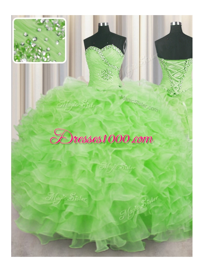 Great Organza Sleeveless Floor Length Sweet 16 Dresses and Beading and Ruffles