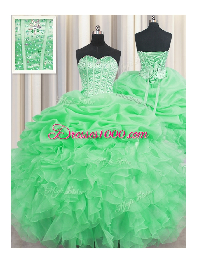 Delicate Pick Ups Visible Boning Sweetheart Sleeveless Lace Up 15 Quinceanera Dress Organza