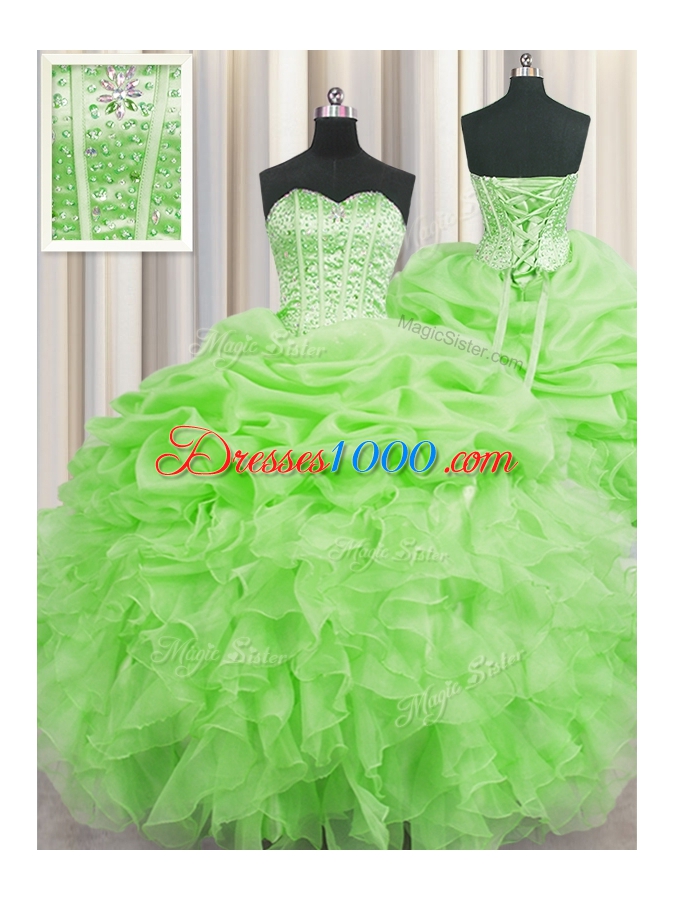 Visible Boning Sleeveless Floor Length Beading and Ruffles and Pick Ups Lace Up Quince Ball Gowns with