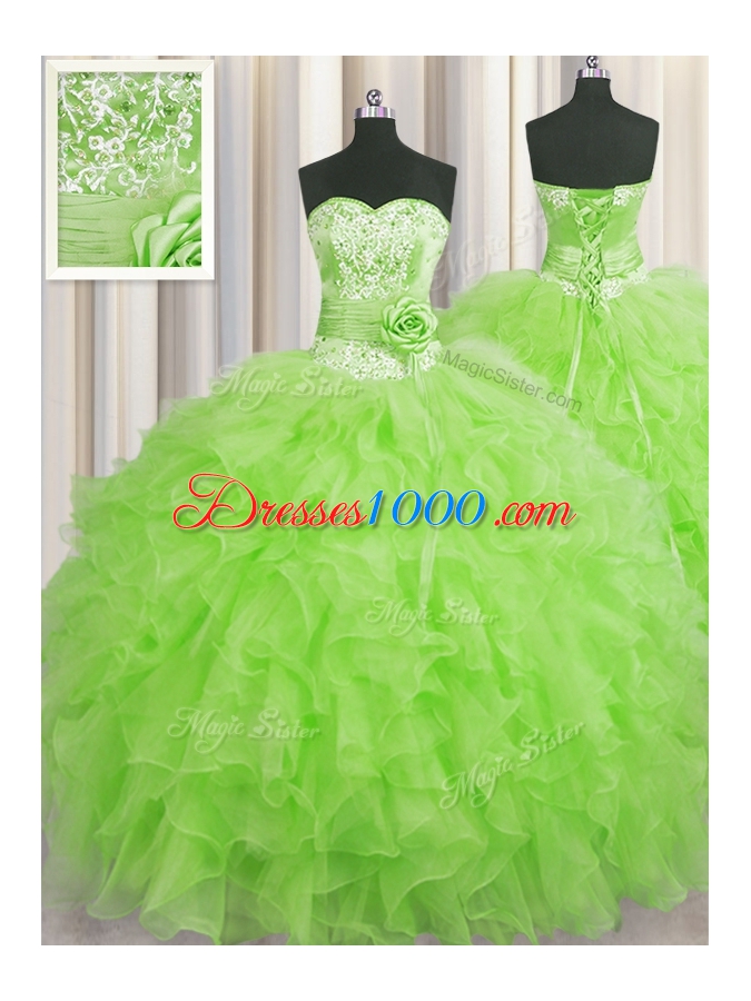 Handcrafted Flower Ball Gowns Sweet 16 Dress Sweetheart Organza Sleeveless Floor Length Lace Up