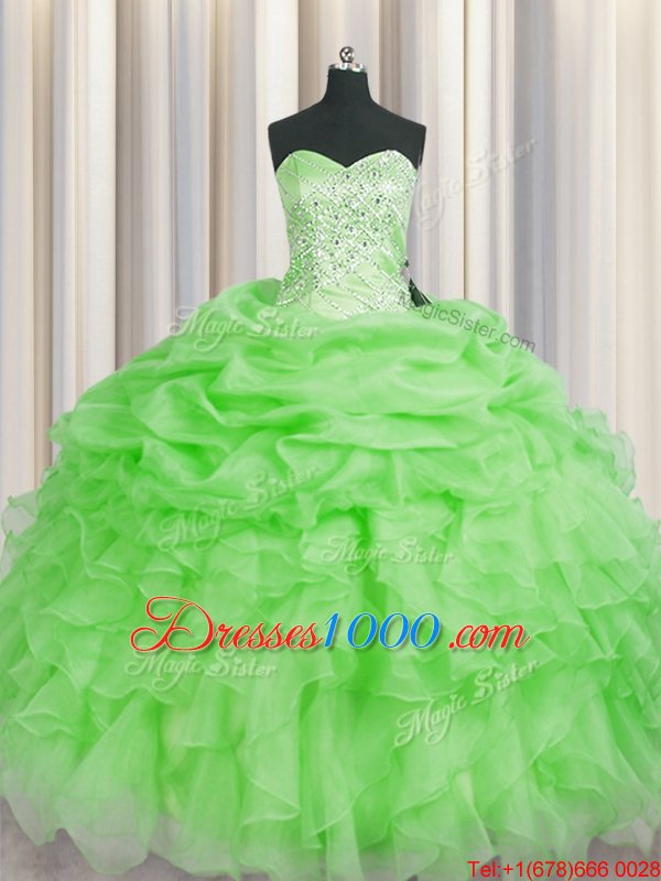 Organza Sleeveless Floor Length Ball Gown Prom Dress and Beading and Ruffles