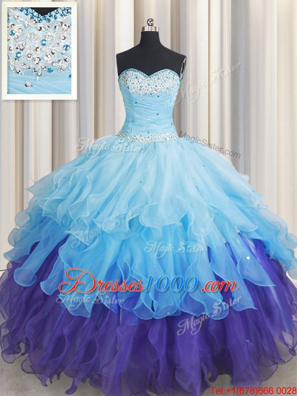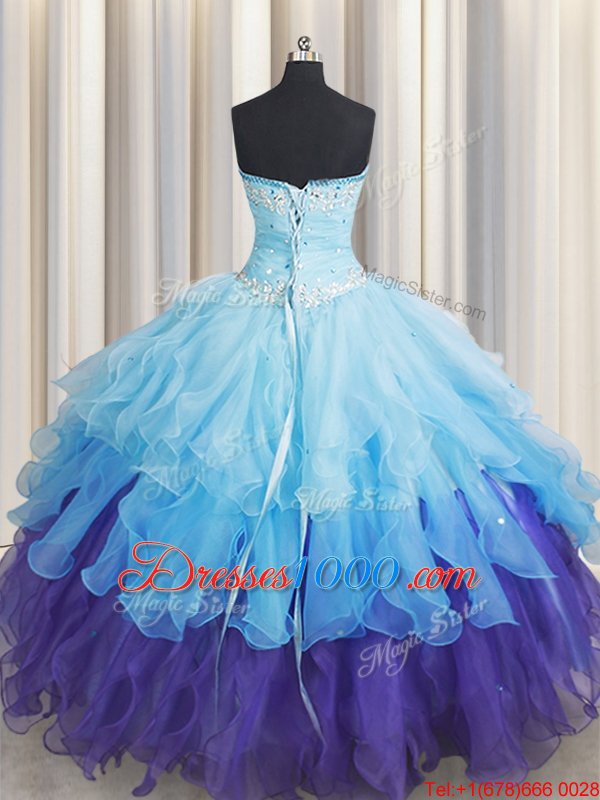 Fantastic Multi-color Lace Up Quinceanera Dresses Beading and Ruffles and Ruffled Layers and Sequins Sleeveless Floor Length