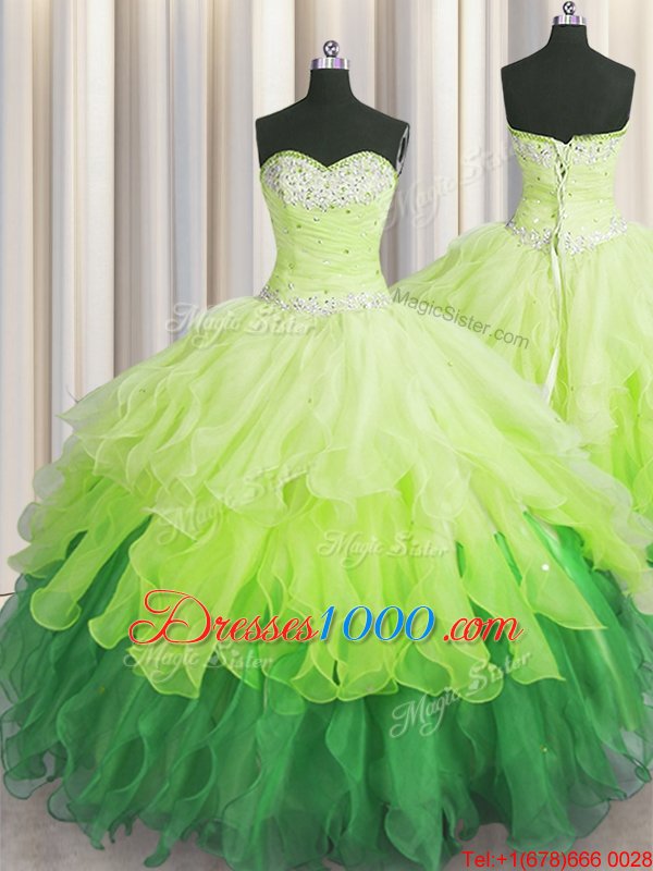 Multi-color Organza Lace Up Quinceanera Dresses Sleeveless Floor Length Beading and Ruffles and Ruffled Layers and Sequins