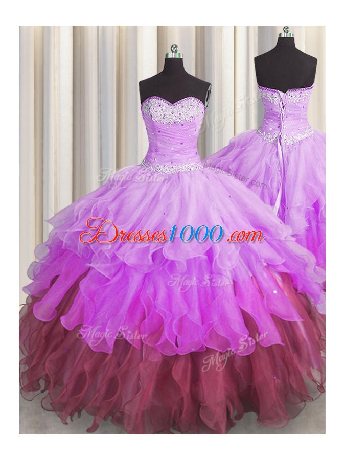 Hot Sale Sleeveless Beading and Ruffles and Ruffled Layers and Pick Ups Lace Up Quinceanera Dress