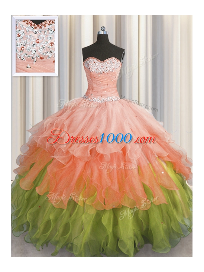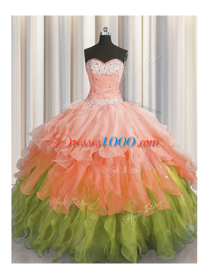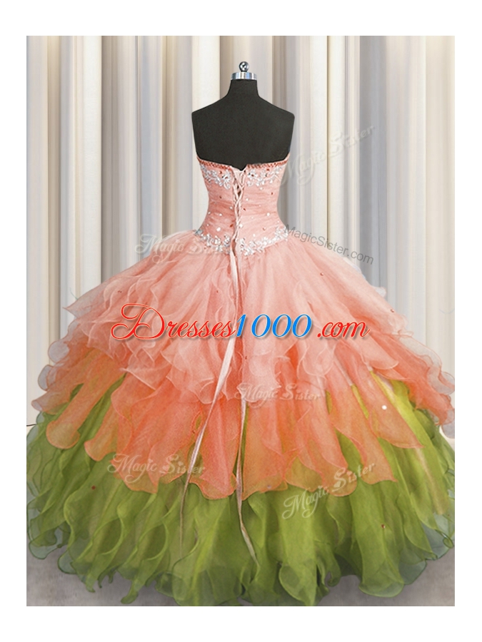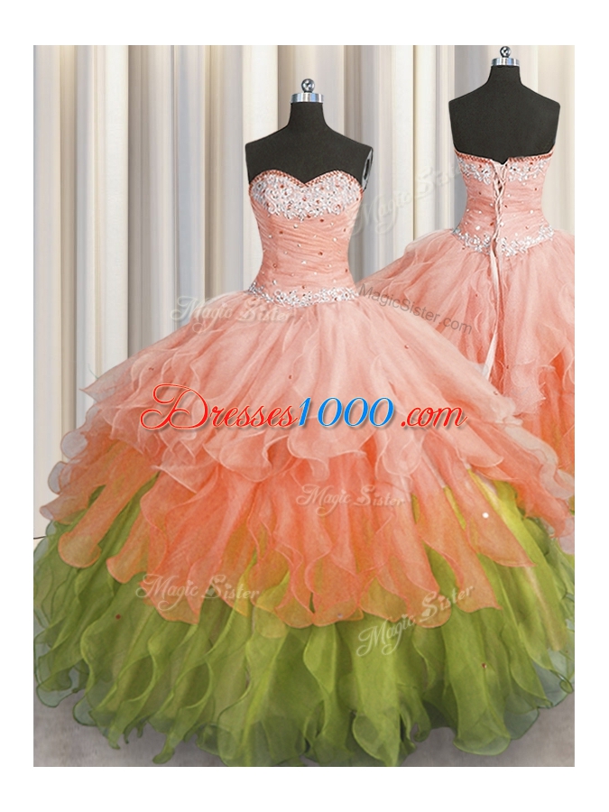Multi-color Lace Up Sweetheart Beading and Ruffles and Ruffled Layers and Sequins Quinceanera Gown Organza Sleeveless