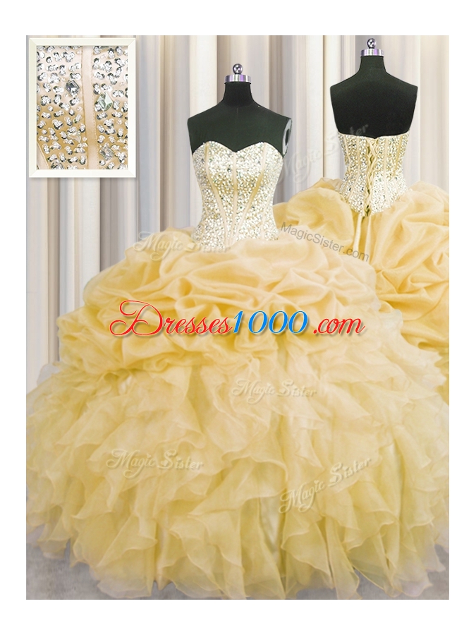 Visible Boning Organza Sleeveless Floor Length Quinceanera Dress and Beading and Ruffles