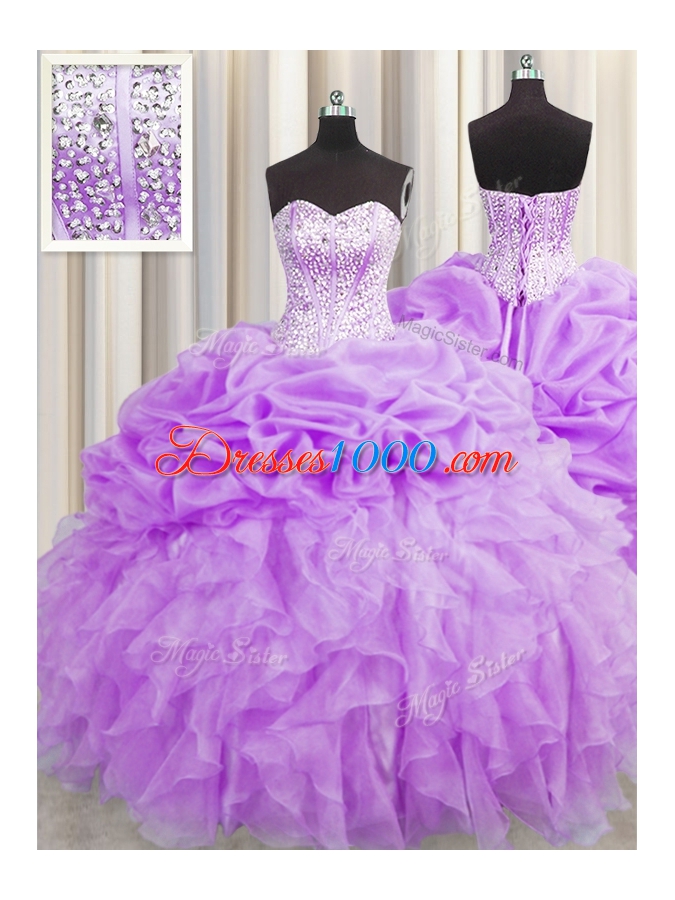 Fashion Pick Ups Visible Boning Sweetheart Sleeveless Lace Up Quinceanera Gowns Purple Organza