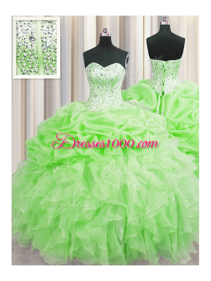 Visible Boning Lace Up Sweetheart Beading and Ruffles and Pick Ups Quinceanera Dress Organza Sleeveless
