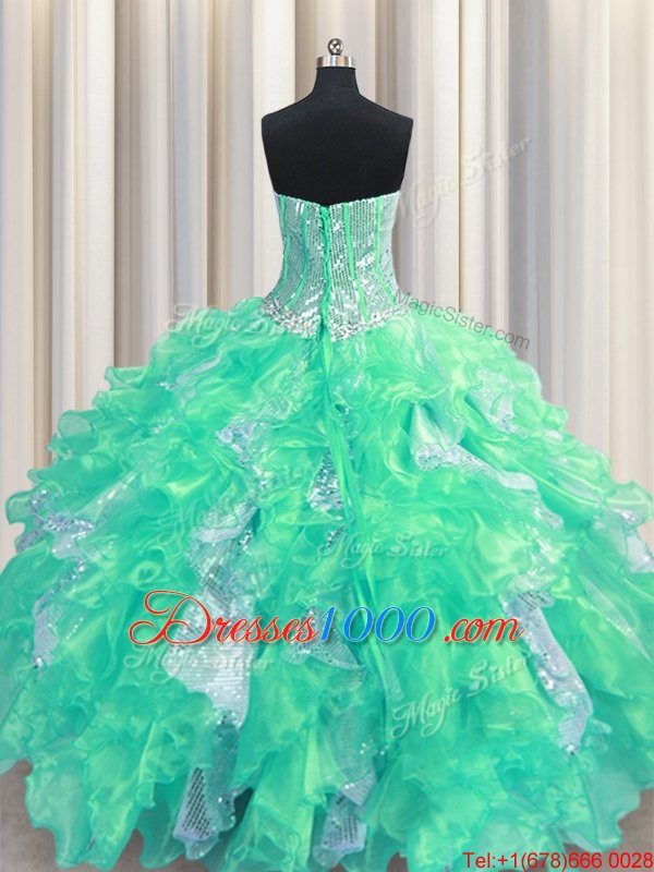 Popular Turquoise Sweetheart Neckline Beading and Ruffles and Sequins Sweet 16 Quinceanera Dress Sleeveless Lace Up