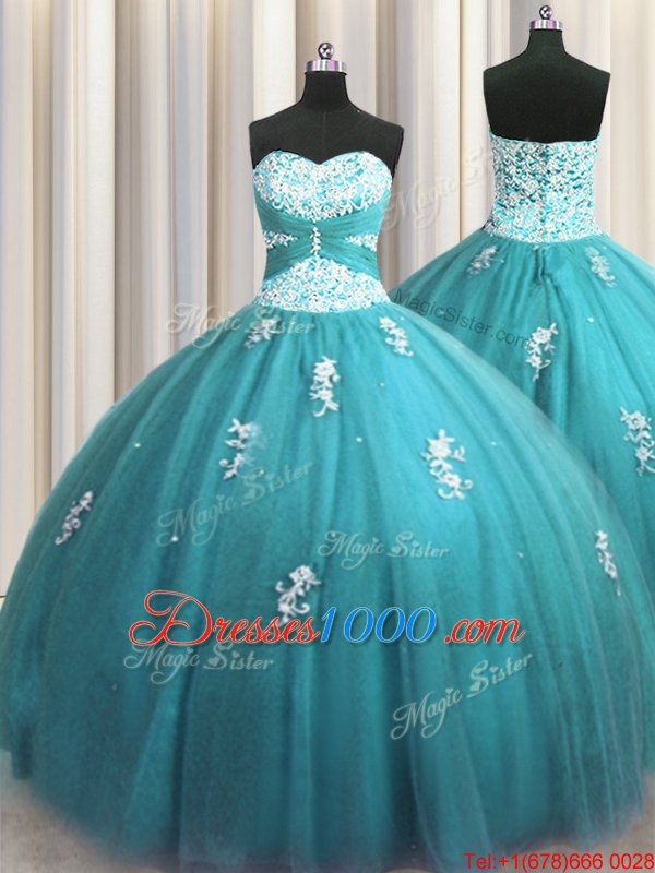 Top Selling Teal Halter Top Lace Up Beading and Appliques Quinceanera Dress Sleeveless