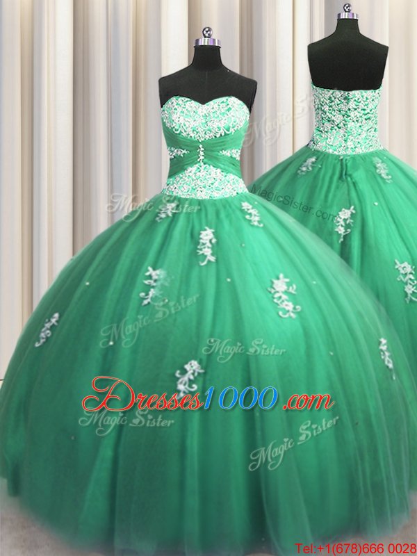 Shining Sleeveless Beading and Appliques Lace Up 15 Quinceanera Dress